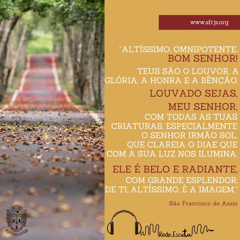 - Altíssimo, onipotente e bondoso Senhor, a Ti pertencem o louvor, a glória, a honra e todas as bênçãos. Ao observar, maravilhada, a experiência mística de São Francisco, que sintetiza o verdadeiro significado da criação, o poema do Cântico do Irmão Sol busca evidenciar a fragilidade da condição humana em contraste com a grandiosidade de Deus, abrangendo todo o universo como uma obra divina e uma fraternidade universal. Portanto, assim como Francisco, em Assis, cuja paixão por Cristo me inspirou a trilhar o mesmo caminho em busca de uma união com Ele, atrevo-me a cantar: Ó Altíssimo, Grande e Bondoso Deus, a Ti se deve o louvor, a honra e a glória por toda a beleza de Tuas criaturas, especialmente pela maravilhosa expressão do Teu amor em mim, por me inserires na ampla família de Teus filhos e por me concederes a vocação à santidade através do dom do Batismo.
